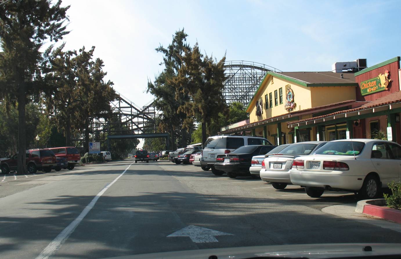 I've left the park and have passed under Ghostrider and am in the Marketplace parking lot. Look at all that wood.