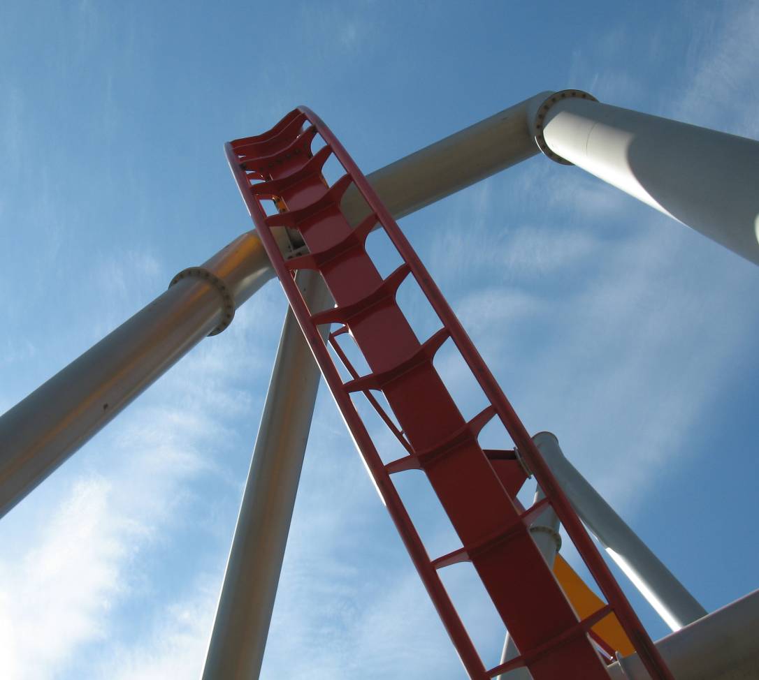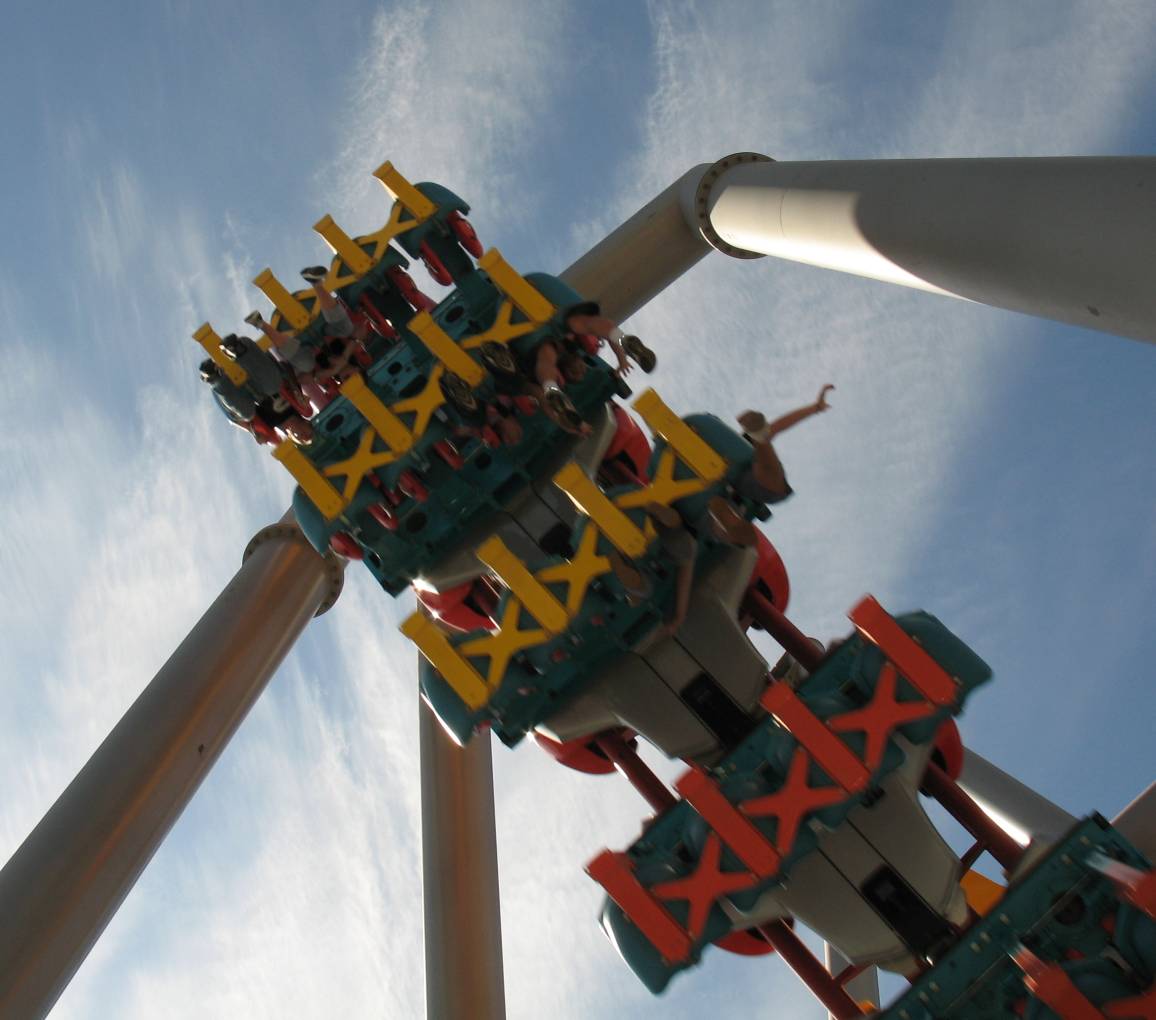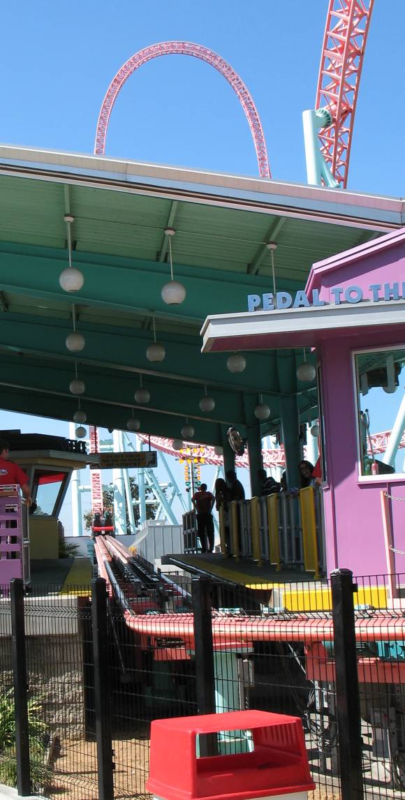 Next up—Xcelerator. This is a Rockin' Coaster type ride where they shoot you off at a great acceleration rate, then you zoom up and over. You do a twist just before and after the peak, followed by a couple of less exciting climbs/turns. It is a short ride, but worth doing over.