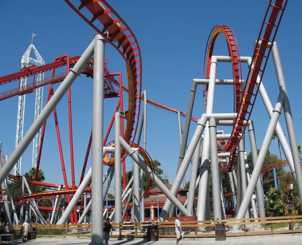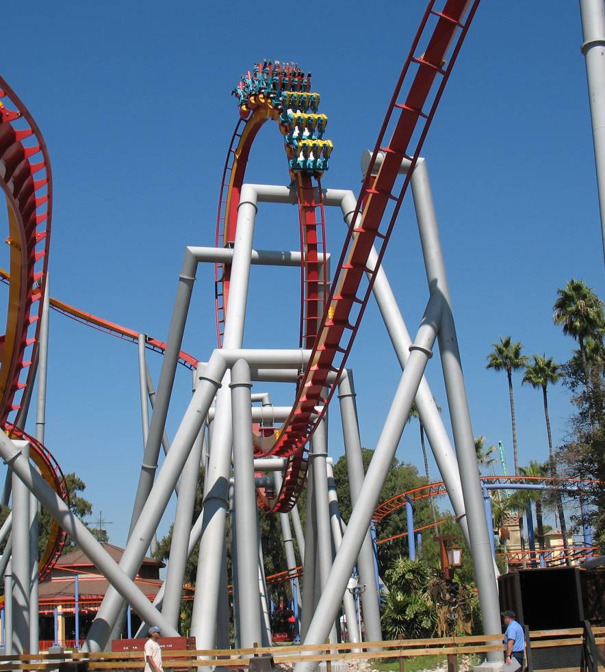 Silver Bullet. This must be the park's signature ride because it's right inside the entrance and is used a lot in commercials. The ride launches from the left and the first slow clime is there on the left. It twists, turns and loops until you are ready to see if the crowd is ready to catch lunch.